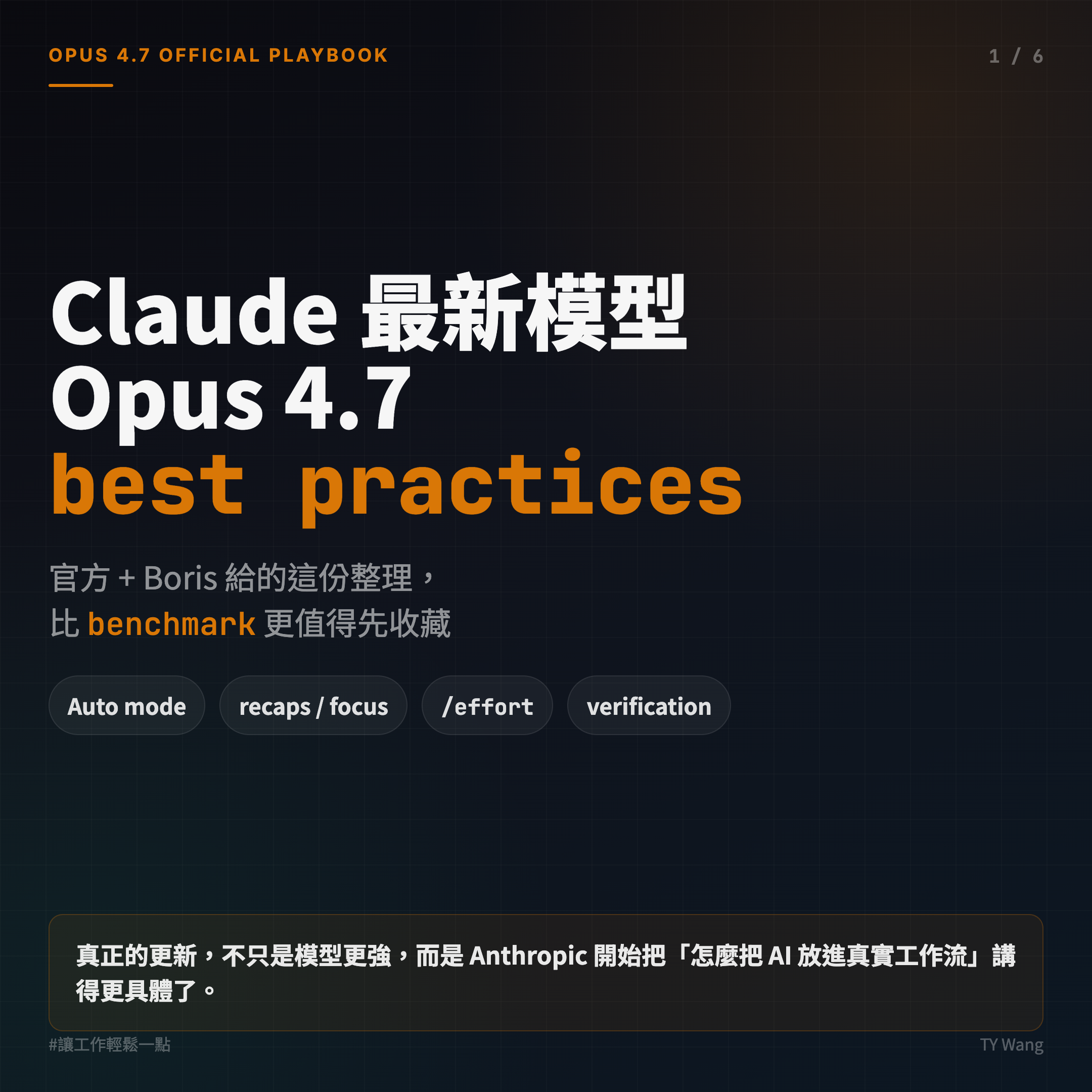 >Opus 4.7 這次最值得抄的,不只是 benchmark,而是官方幾乎把整套使用方法一起發布了。